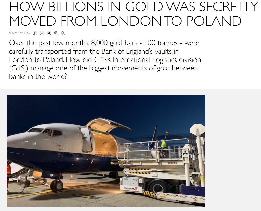 8.000 Goldbarren, 100 Tonnen Gold, seien insgesamt per Flugzeug von London nach Polen zu zwei verschiedenen Flughäfen geflogen und dann in Begleitung von Special Forces der polnischen Polizei zur polnischen Zentralbank nach Warschau weitertransportiert worden. Jeder Barren wog 12,5 Kilogramm. Acht Flüge seien notwendig gewesen. Das macht 12,5 Tonnen pro Flug. Eine Boing 737 diente als Frachtflugzeug.