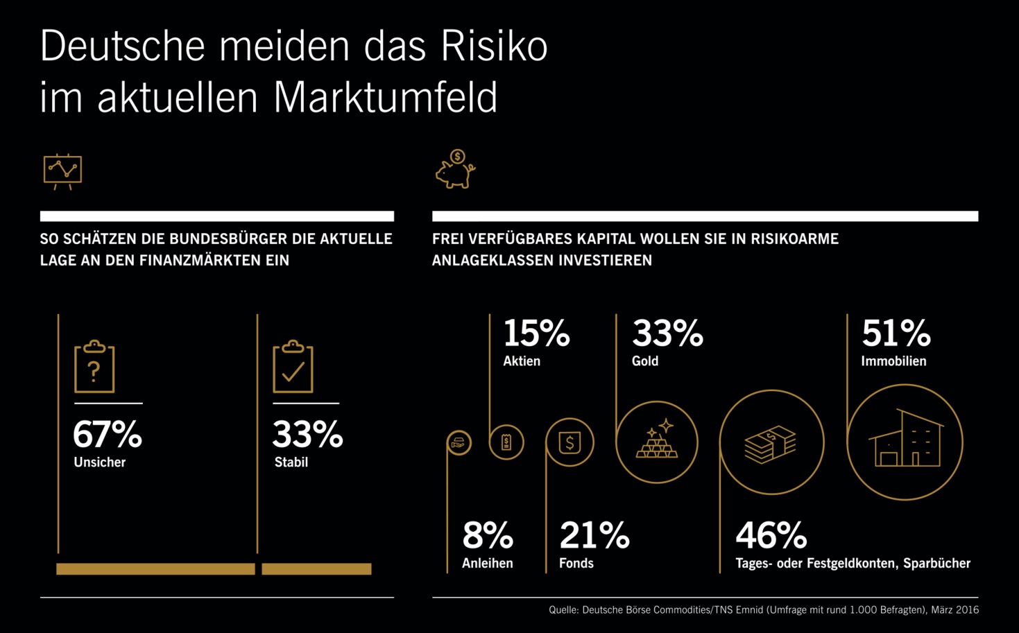 Das Marktforschungsinstitut TNS Emnid hat im Auftrag von Deutsche Börse Commodities eine repräsentative Umfrage zur Anlegerstimmung in Deutschland durchgeführt.