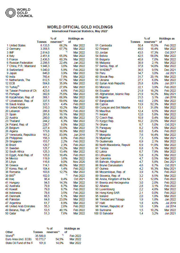 Weltweitere-Goldreserven 05-22