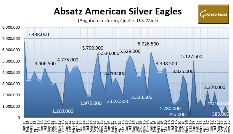 American Eagles Silber Absatz 11-2017