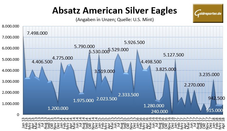 American Gold Eagles: Absatzschwäche setzt sich fort