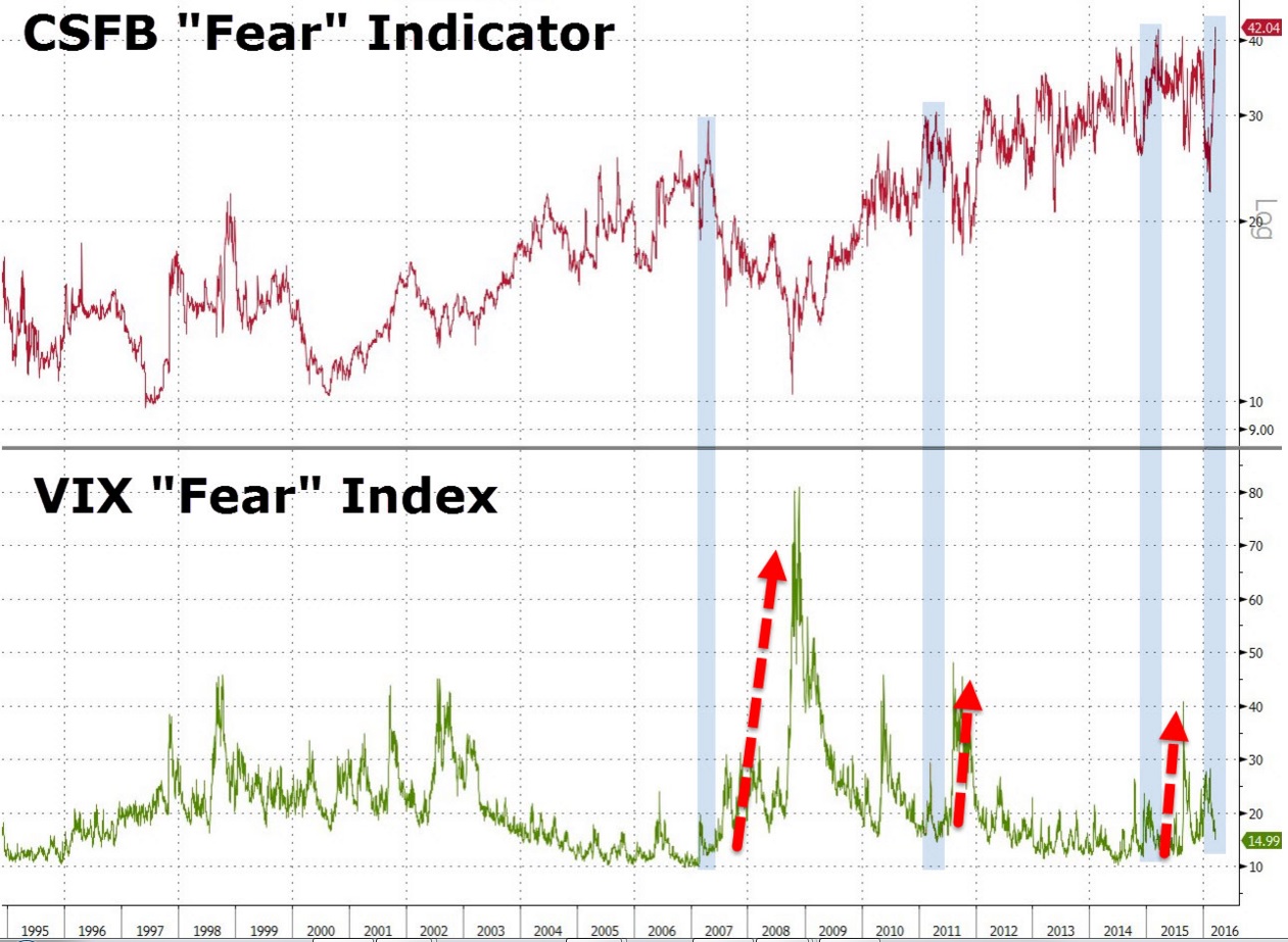 Wie Zerohedge berichtet, hat der CSFB Fear Index zuletzt ein neues Allzeithoch markiert. Trotz der jüngsten Börsen-Erholung ist also weiterhin Vorsicht an den Finanzmärkten angesagt.