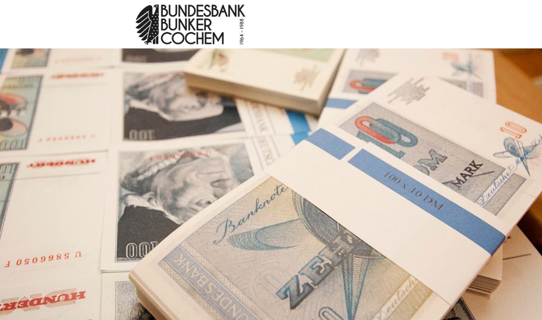 In den frühen 60er-Jahren ließ die Deutsche Bundesbank im pfälzischen Cochem einen Bunker errichten. 100 Meter tief sprengte man sich den Weg horizontal in einen Schieferberg. Die Bauarbeiten liefen unter strenger Geheimhaltung. Der Zweck der Operation: Der Bunker diente unter anderem zur Lagerung von 15 Milliarden D-Mark in Form einer Ersatzwährung. Sie wäre zum Einsatz gekommen, wenn die deutschen Geldbestände kurzfristig hätten ausgetauscht werden müssen. Als Szenarien für eine solche Maßnahme wurde der mögliche Einmarsch der Sowjet-Armee auf bundesdeutsches Gebiet, ein Atomkrieg oder ein terroristischer Akt in Erwägung gezogen.