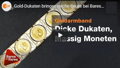 Was sind solche Gold-Armbänder heute wert? Das Problem: Die eingefassten Münzen lassen sich oft nicht beschädigungsfrei herauslösen. Sollte sich unter den Münzen also ein selteneres Stück befinden, dann ist der Sammlerwert im Zweifel dahin. Was bleibt, ist der reine Goldwert. In der ZDF-Sendung „Bares für Rares“ wurden in der Vergangenheit mehrfach solche Münz-Armbänder vorgestellt. Zuletzt kam ein Anbieter mit einem mit Dukaten bestücktes Stück ins Studio. Und der erhielt mehr Geld dafür als erwartet.