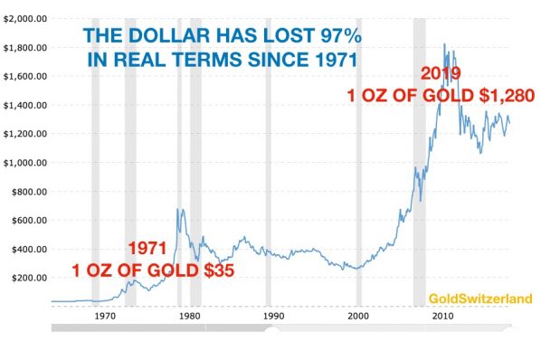 Ich hatte das Glück, schon früh zu erfahren, was mit der Wirtschaft eines Landes passieren kann. Die Zeiten waren hart, aber es gab keine Depression und die meisten Menschen hatten eine Arbeitsstelle. Man darf Folgendes nicht vergessen: Im August 1971 hatte Nixon die Golddeckung des Dollars aufgehoben, womit der Kredit- und Geldschöpfung, deren Endphase wir jetzt erleben, Tür und Tor geöffnet war. Der enorme Anstieg der Goldpreise in den 70ern war hauptsächlich durch zweistellige Inflation und Währungsentwertung verursacht worden.