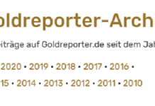 Artikel-Archiv: Alle Beiträge auf Goldreporter.de seit dem Jahr 2010. Klicken Sie auf das jeweilige Erscheinungsjahr.