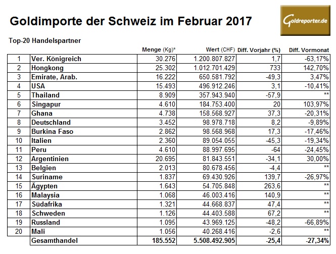 Schweiz 02-2017 Goldimporte
