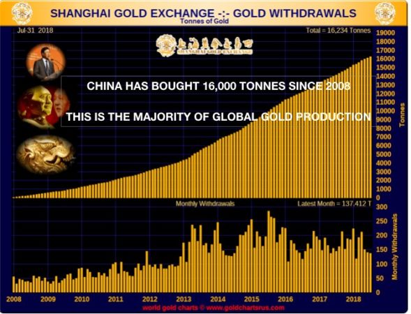 Während der Westen seine Goldbestände offen wie verdeckt reduziert, akkumuliert der Osten weiterhin so viel er kann zu den derzeitigen Schnäppchenpreisen. Die meisten Zentralbanken haben einen Großteil ihres Goldes am Markt verkauft oder verliehen. Über die Edelmetallbanken wird dieses Gold dann von China, Indien oder Russland aufgekauft. Diese Länder des Ostens lassen sich das Gold ganz offensichtlich physisch ausliefern, anstatt es in London oder New York zu lassen. Der Goldeigentümer muss direkte Kontrolle haben.