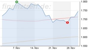 € 23,53 (+2,84 %)Preise am letzten Handelstag des Monats; London Fix A.M., In Klammern: Entwicklung seit 31.12.10.