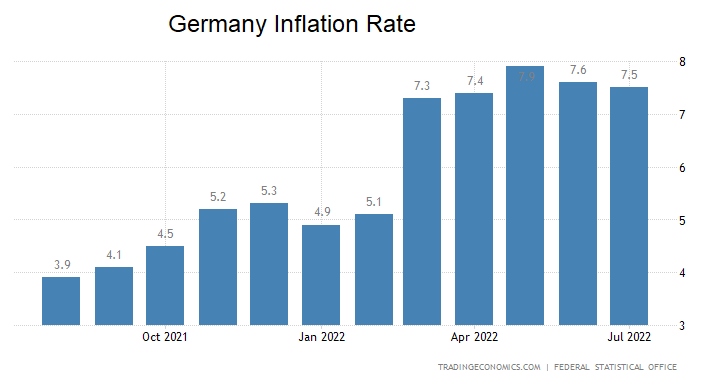 Deutsche Inflationsrate im Juli bei 7,5 %