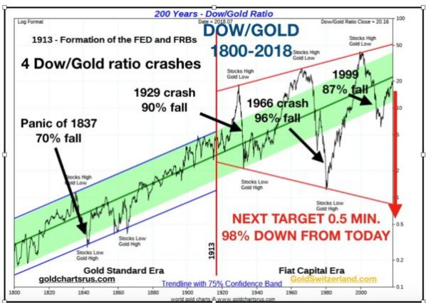 Ein Rückgang dieser Größenordnung würde mit einem Aktienmarktcrash von 98 % (gemessen an den aktuellen Notierungen) gegenüber Gold einhergehen. Für die Wenigen, die diesen Crash vorhersehen, wird es der Weg zum Glück sein. Doch für jene 99,5% der Investoren, die diesen relativ simplen gordischen Knoten nicht lösen werden, bedeutet es Elend und die größte Vermögensvernichtung der Geschichte.