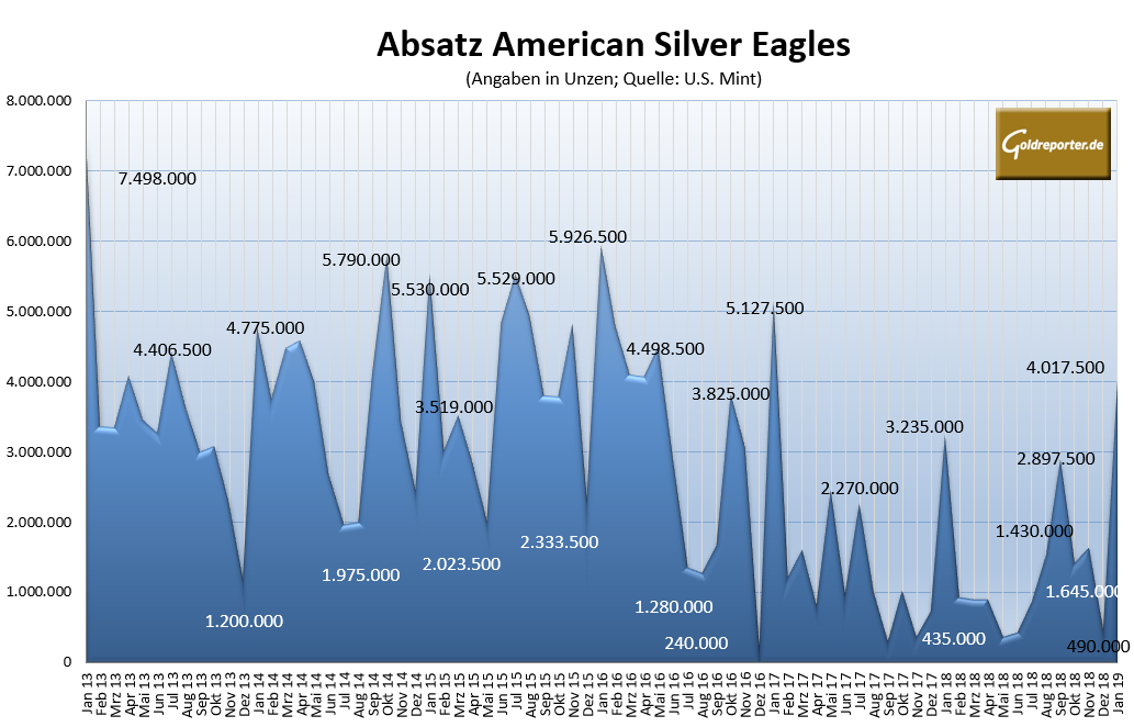 Edelmetall-Absatz der U.S. Mint im Januar explodiert