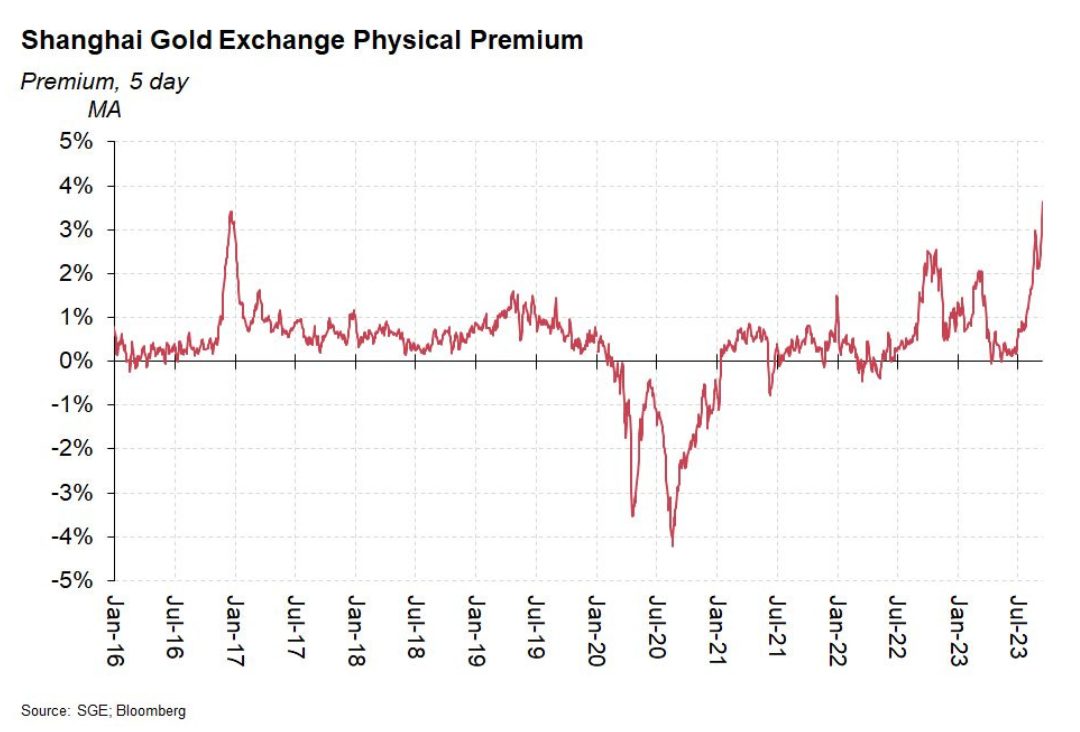 Die anhaltend hohen Aufgelder in Shanghai haben den Anstieg des Goldpreises seit letztem September unterstützt.
