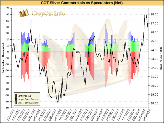Der Run auf die Bestände der COMEX spielt sich in einem Umfeld ab, in dem die Commercials am Terminmarkt ihre Short-Positionen (Leerverkäufe) nicht wesentlich reduziert haben: