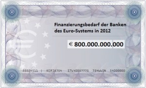 Nicht zu vergessen sind die fälligen Anleihen, die durch Banken begeben wurden. Presseberichten zufolge müssen die Banken des Euro-Systems im kommenden Jahr Schuldverschreibungen im Volumen von rund 800 Milliarden Euro refinanzieren.