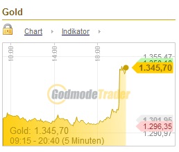 Nach Bekanntgabe der Fed-Entscheidung zog der Goldkurs bis 20:30 Uhr zunächst rasant auf 1.344 US-Dollar (996 Euro) an. Silber kletterte auf 22,50 Dollar (16,70 Euro). Auch der Euro stieg gegenüber dem US-Dollar um gut 1 Prozent auf knapp 1,35 US-Dollar.