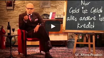 Kunstfigur Dr. Alfons Proebstl erklärt uns, was Gold ist und wie sich eine Papierwährung dazu verhält. Er bedient sich bei Begriffen der Biologie, um das nahende Ende unseres Geldsystems zu beschreiben.