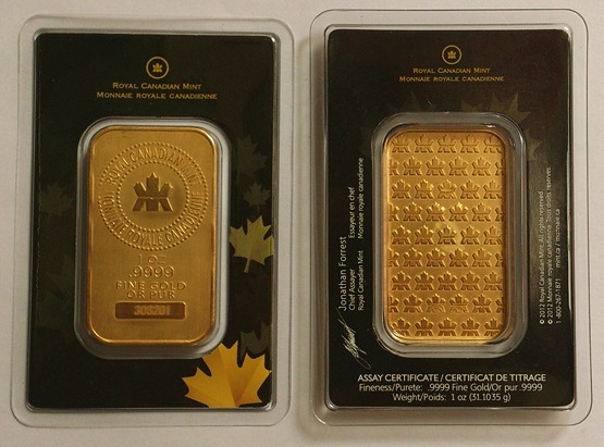 Schon seit mindestens 2014 bekannt: Gefälschte Goldbarren der Royal Canadian Mint zu 1 Unze (Foto: Aurotest.de)