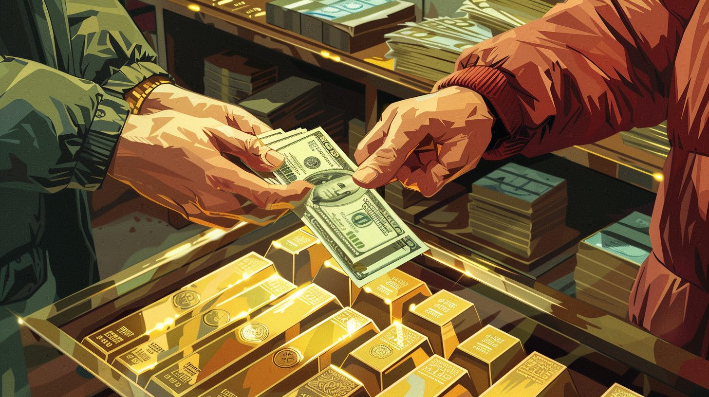 Goldbarren und Banknoten beim anonymen Barkauf ohne Ausweiskontrolle
