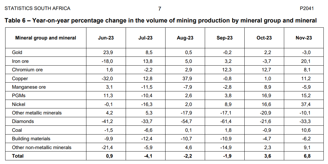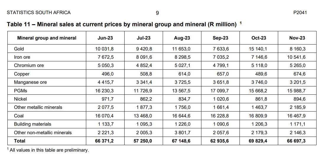 Andersherum lief es zuletzt beim Absatz an Metallen der Platin-Gruppe (PGM). Denn hier stieg das Ergebnis gegenüber Vormonat um 2 Prozent – mit zuletzt 15,98 Milliarden Rand (767 Millionen Euro). Dagegen sanken die PGM-Verkäufe im Vorjahresvergleich um 22,5 Prozent.