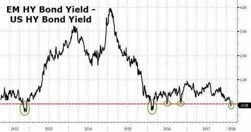 Im Jahr 2017 wuchsen die mit Schrott-Status bewerteten Schulden der Schwellenmärkte um enorme 50 % an; Anleihen im Gegenwert von 80 Mrd. $ wurden emittiert. Wegen der allgemeinen Renditejagd liegt die Verzinsung renditestarker Staatsanleihen von Schwellenländern aktuell höher als die äquivalenter US-Anleihen.