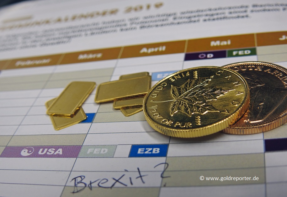 In dieser Woche stehen eine Reihe potenziell kursbewegender Events an, auch für Gold. Im Zentrum steht der kommende Mittwoch. Am Nachmittag gibt die Europäische Zentralbank das Ergebnis ihrer turnusmäßigen geldpolitischen Sitzung bekannt. Um 14:30 Uhr kommen neue Inflationsdaten aus den USA. Abends veröffentlicht die US-Notenbank das Protokoll ihrer Sitzung vom 19./20. März. Und auch in der Brexit-Debatte steuern wir an diesem Tag auf einen neuen Höhepunkt zu.