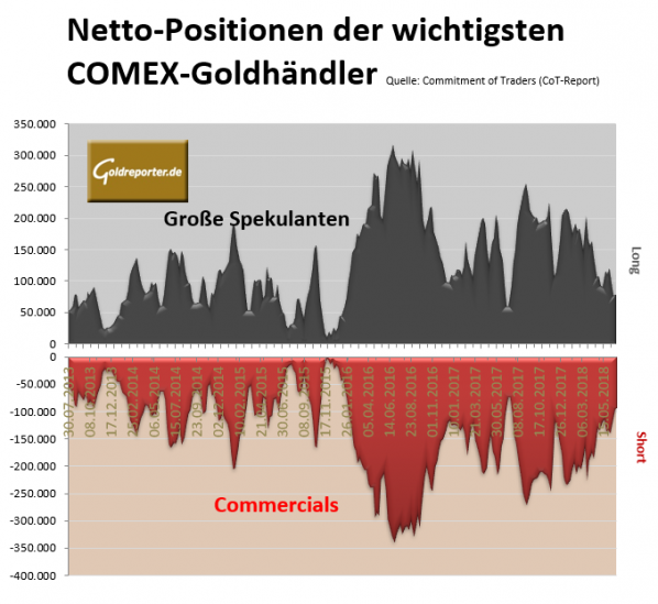 Bei Gold ergaben sich gegenüber Vorwoche folgende Veränderungen in den Positionen der größten Händlergruppen.