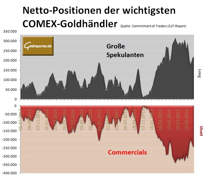 Die Zahlen zeigen die Goldhandels-Positionen vom 8. November 2016. Das war der Tag der US-Wahl, also ein Tag bevor das Wahlergebnis feststand.