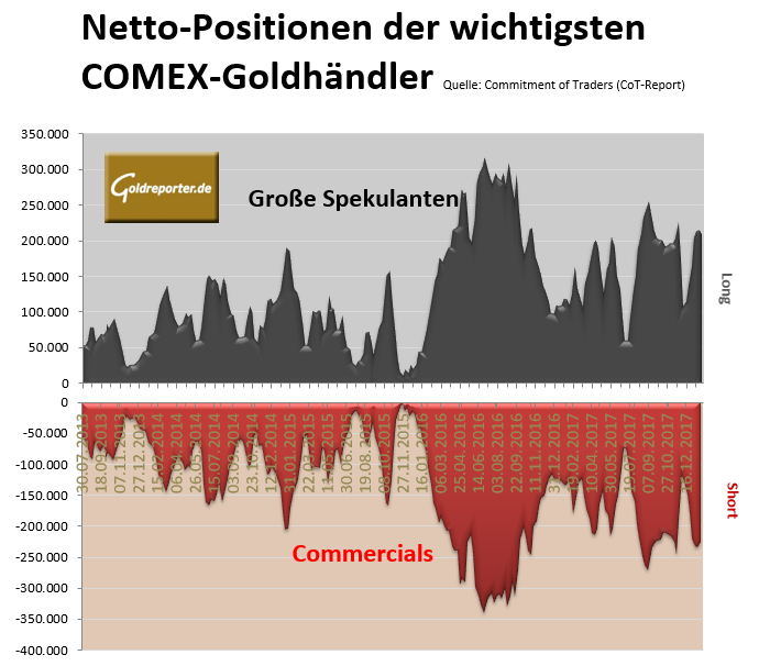 Die aktuellen COT-Daten vom US-amerikanischen Gold-Futures-Handel zeigen per 30. Januar 2018 folgende Veränderungen gegenüber Vorwoche.