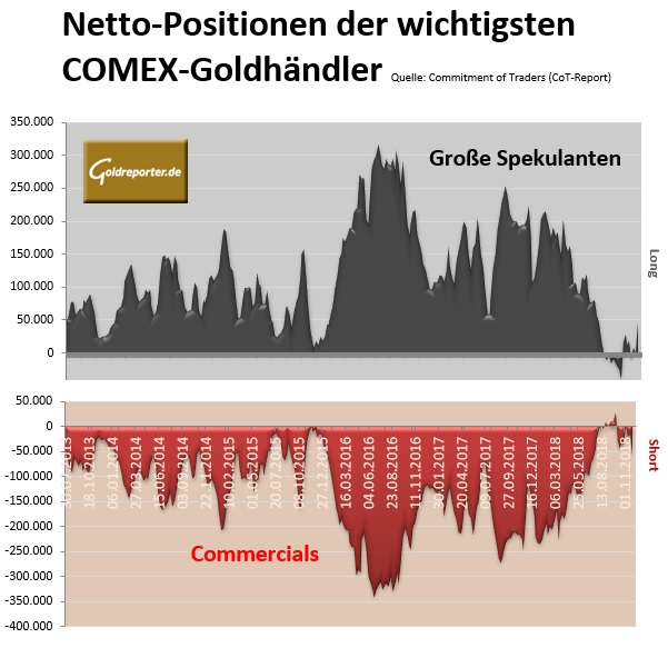 Im Zuge des gestiegenen Goldpreises gab es an der COMEX erhebliche Umschichtungen in den Positionen der größten Händlergruppen. Es ist ein weiterer Schritt zurück zur „Normalität“.