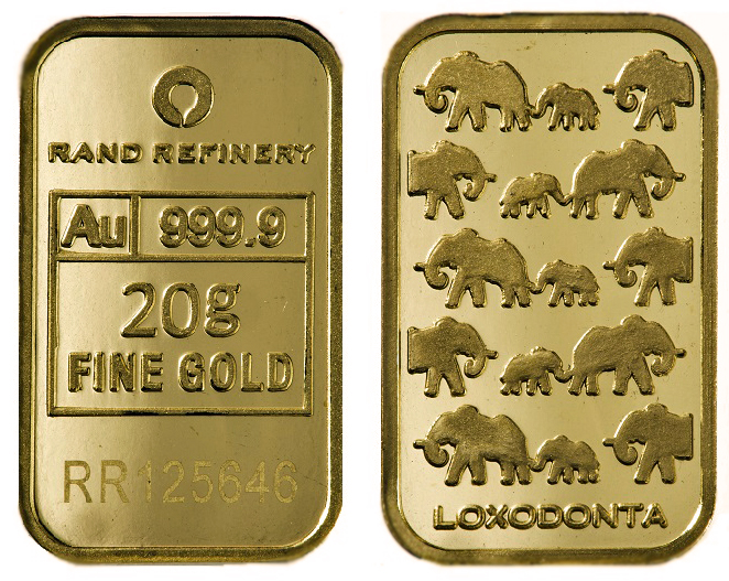 Die südafrikanische Rand Refinery bietet nehmen dem Krügerrand auch eine Reihe von Gold-Investmentbarren an. Zwei Varianten sind einem Nationalsymbol des Landes gewidmet: dem Afrikanischen Elefanten.