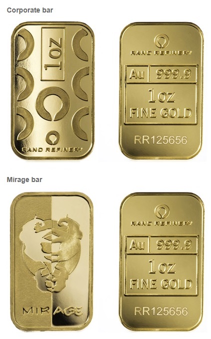 „Corporate“ Goldbarren und „Mirage“ Goldbarren (Foto: Rand Refinery)