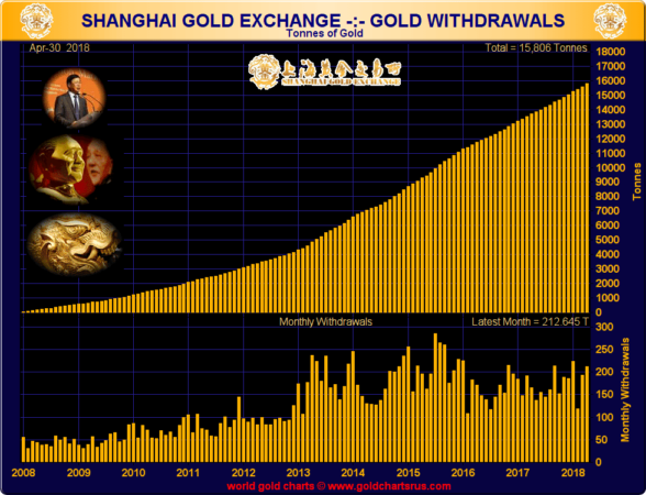 China weiß, was passieren wird. Deshalb hören die Chinesen auch nicht auf, Gold in gewaltigen Mengen zu akkumulieren. Letzten Monat stockten sie um weitere 212 Tonnen auf und haben seit 2008 nun fast schon 16.000 Tonnen Gold gekauft, was dem größten Teil der globalen Bergbauproduktion entspricht.