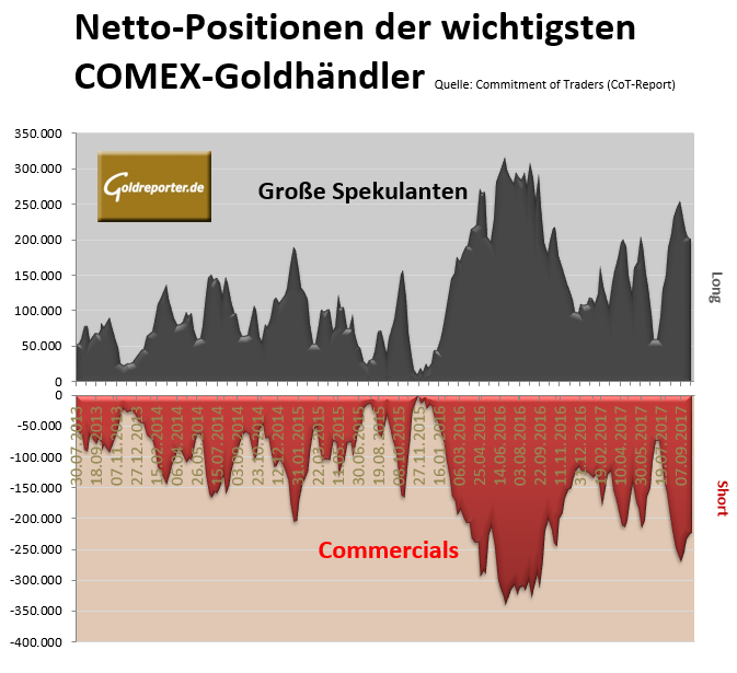 Die aktuellen wöchentlichen CoT-Daten vom Gold-Futures-Handel an der COMEX zeigen per 10. Oktober 2017 folgende Veränderungen.