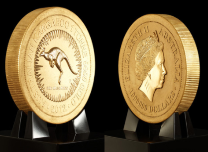 Die bislang schwerste Goldmünze wiegt eine Tonne und stammt aus den Werkstätten der australischen Perth Mint. Die „Känguru-Tonne“ hat heute einen reinen Materialwert von rund 47 Millionen Euro.