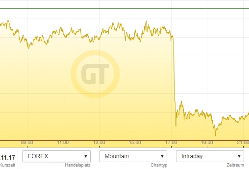 Am gestrigen Freitag kam es bei Gold einmal zu einem plötzlichen Kurseinbruch. Kurz nach 17 Uhr (MEZ) gab der Goldpreis innerhalb von wenigen Minuten um gut 12 Dollar auf 1.275 US-Dollar nach.