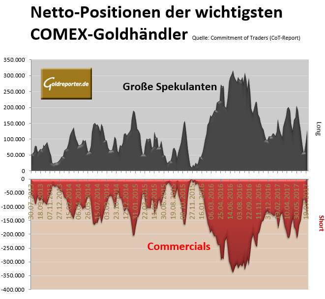 Die aktuellen CoT-Zahlen vom amerikanischen Gold-Futures-Handel zeigen gegenüber Vorwoche folgende Veränderungen.