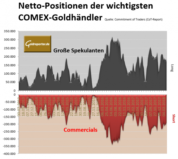 Die aktuellen CoT-Daten vom US-amerikanischen Gold-Futures-Handel an der COMEX zeigen per 13. März 2018 folgende Veränderungen in die Positionen der bedeutendsten Händlergruppen.