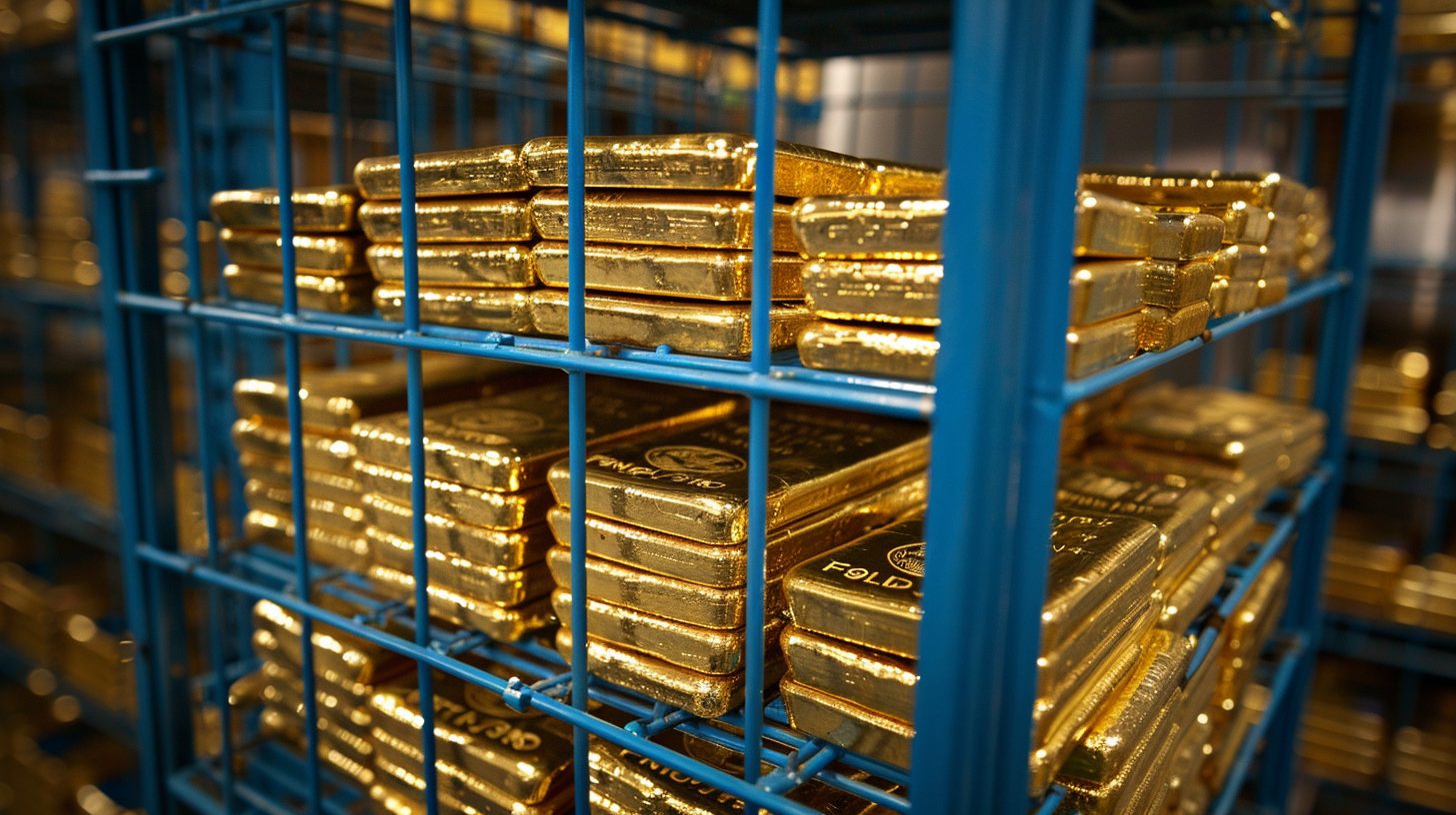 Goldbarren in einem Tresorregal – Symbolbild für Goldabgänge bei der Fed in New York