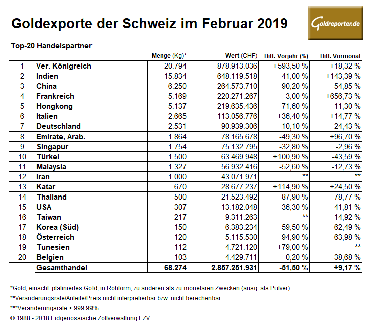Gold: Schweizer Außenhandel gerät ins Stocken