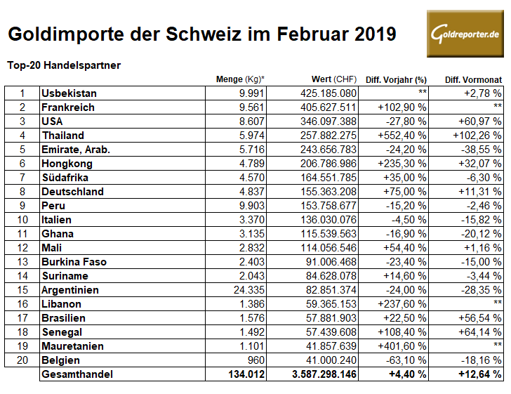 Gold: Schweizer Außenhandel gerät ins Stocken