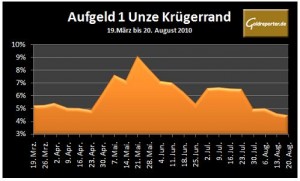 Abb.: Entwicklung des Aufgeldes für eine Unze Krügerrand (Quelle: Goldreporter-Newsletter)