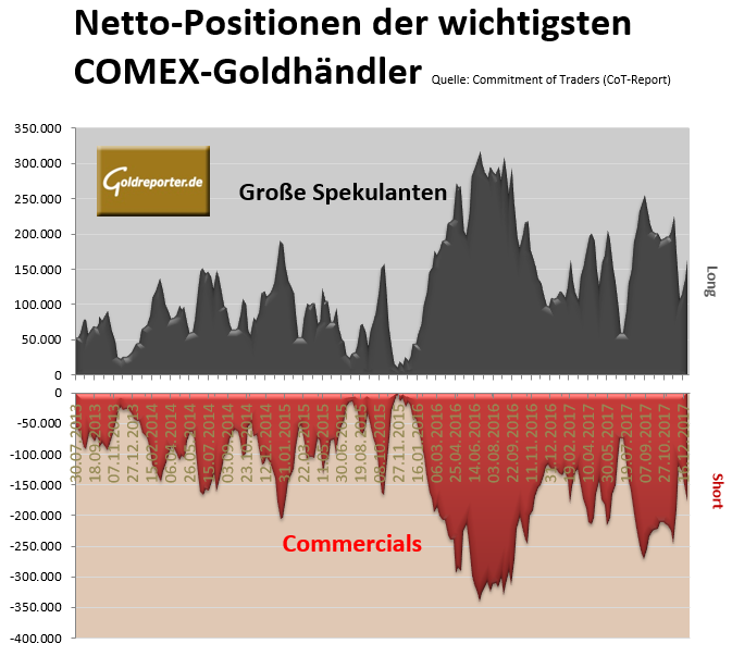 Im Handel mit Gold-Futures ging es gleich zu Jahresbeginn richtig rund. Die aktuellen wöchentlichen CoT-Daten vom Gold-Futures-Handel an der COMEX zeigen per 2. Januar folgende Veränderungen.
