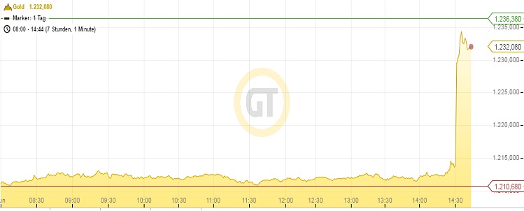 Die Preise für Gold und Silber schossen nach der Bekanntgabe in die Höhe. Gold stieg um 20 Dollar auf 1.233 US-Dollar (1.094 Euro). Der Silberkurs legte um 30 Cent auf 16,35 Dollar zu (14,48 Euro).