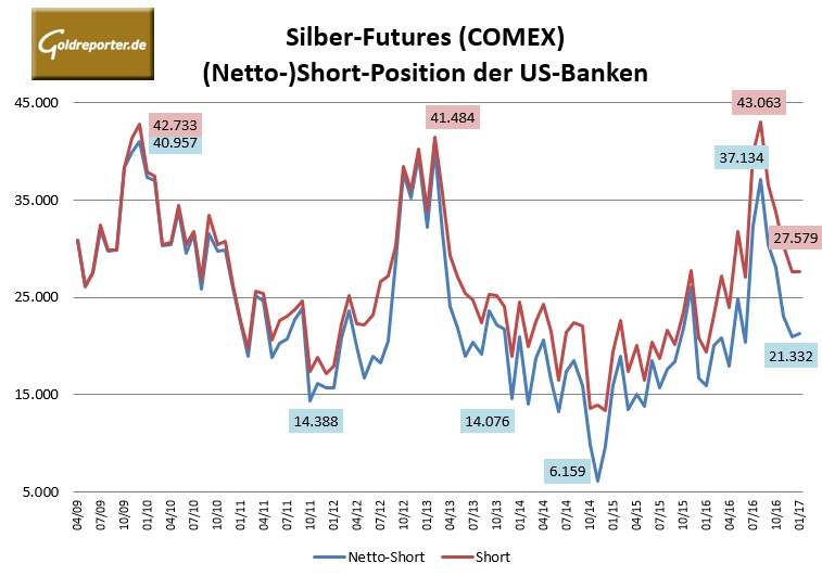 Gold: Verkaufsposition der US-Banken seit Mai 2016 halbiert