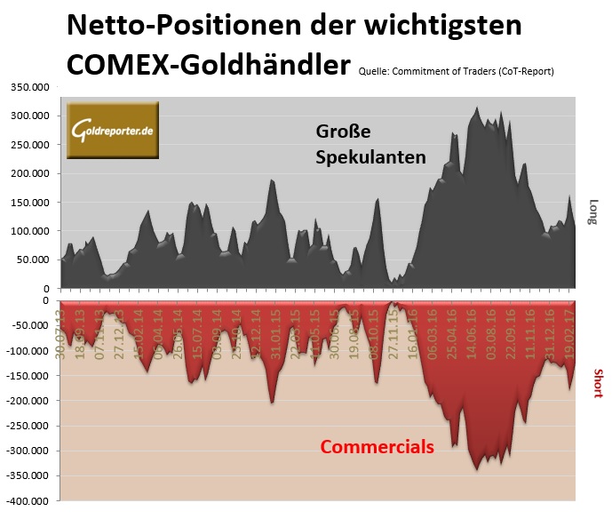 Die jüngsten CoT-Daten zum amerikanischen Gold-Futures-Handel zeigen die Positionen der großen Goldhändler vom 14. März 2017. Es war der Tag vor der Zinsentscheidung in den USA.