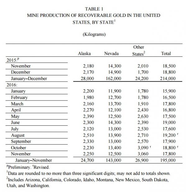 Laut dem aktuellen Marktbericht den U.S. Geological Survey (USGS) war die US-amerikanische Goldproduktion auch im November rückläufig.