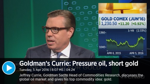 Nun legt deren Chef-Rohstoff-Stratege Jeffrey Currie nach. In einem aktuellen CNBC-Interview sagt er: „Shorten Sie Gold! Verkaufen Sie Gold“. Warum?