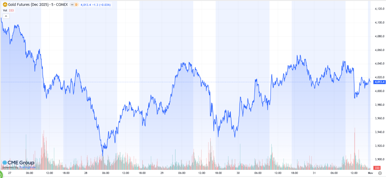Der Goldpreis konsolidiert mit hoher Volatilität und ein Kampf zwischen Bullen und Bären um die Marke von 4.000 US-Dollar ist entbrannt. Am Freitag schloss die Feinunze Gold im US-Futures-Handel (November-Kontrakt) knapp unter dieser bedeutenden Schwelle. Mit 3.997 US-Dollar bzw. 3.464 Euro kam der Goldpreis innerhalb einer Woche um 2,7 Prozent (in USD) bzw. 2,0 Prozent (in EUR) zurück. Vom Rekordhoch am 20. Oktober 2025 (4.357 US-Dollar /3.742 Euro) hat sich Gold nun 8,3 Prozent (in USD) bzw. 7,4 Prozent (in EUR) entfernt.
