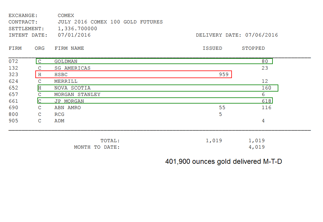Daß die Bullionbanken permanent abgestandenes Wasser predigen, aber selbst Schampus vom Feinsten saufen und die Massen „nach Strich und Faden verarschen…“ kann man deutlich sehen, wenn man kontrolliert, WER sich z.B. gestern jede Menge Comex-Goldunzen in’s versteckte Haus liefern ließ:
